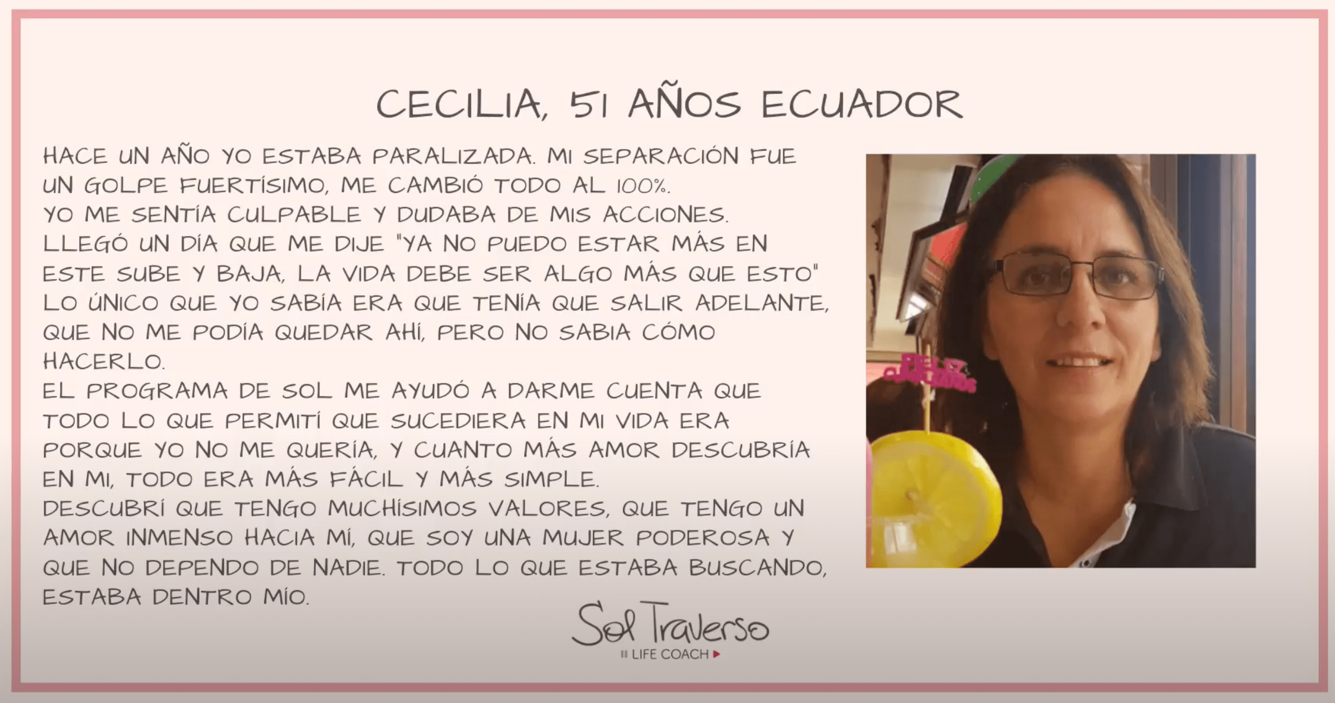Ayudo a las mujeres en sus procesos de cambio, las acompaño, las guío para que alcancen sus metas y sus objetivos de una manera totalmente personalizada.