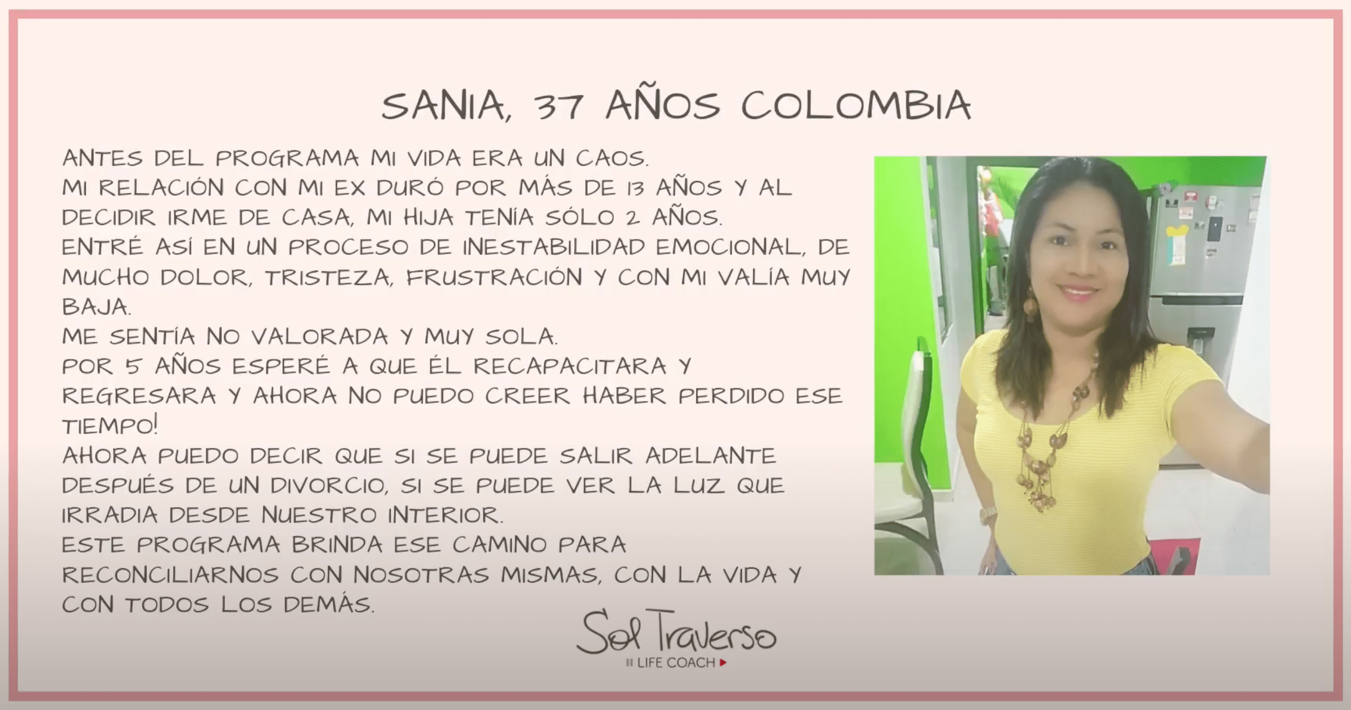 Con mi taller ayudo específicamente a mujeres que han pasado por una separación o divorcio a cerrar definitivamente esa etapa tan dolorosa de sus vidas.